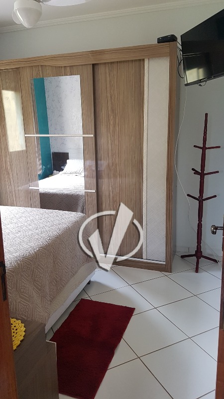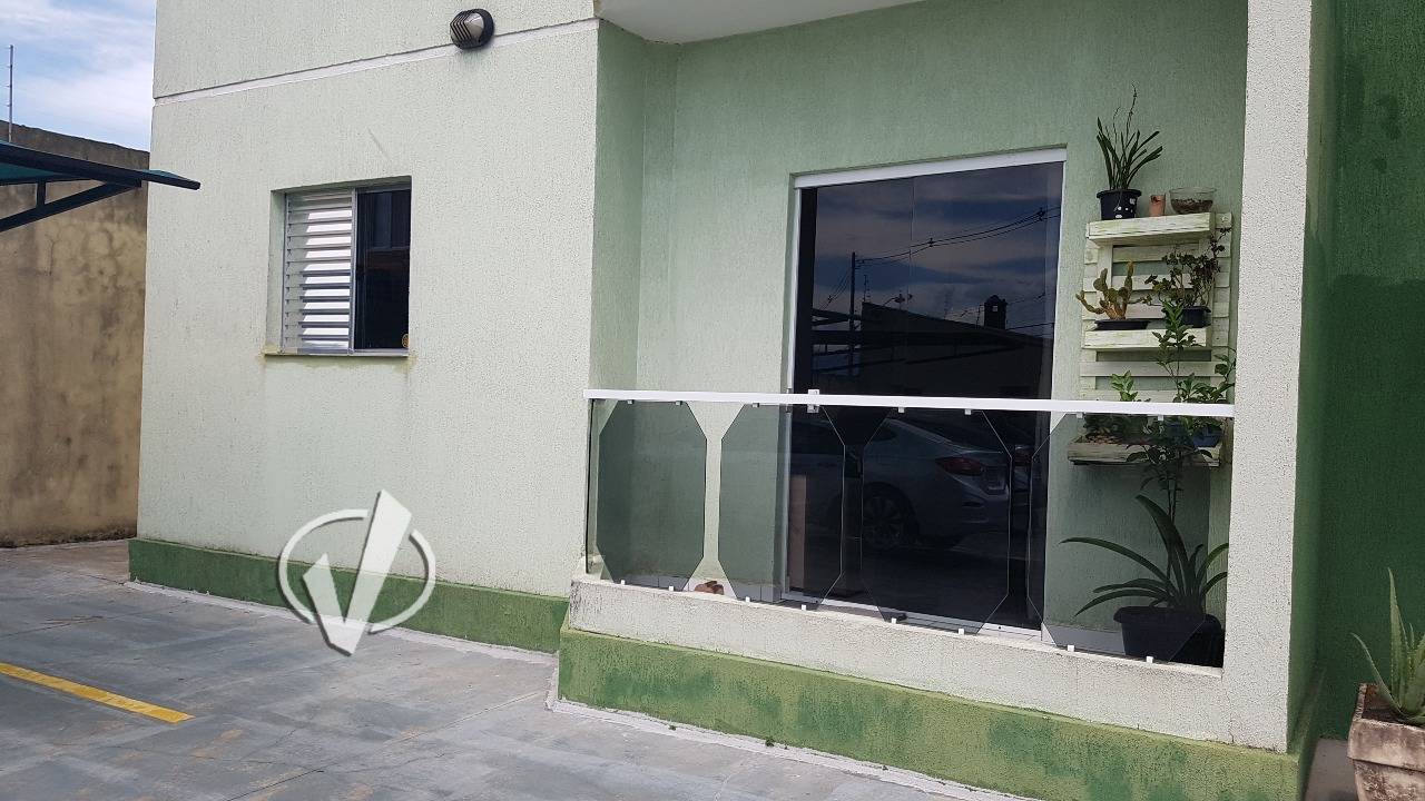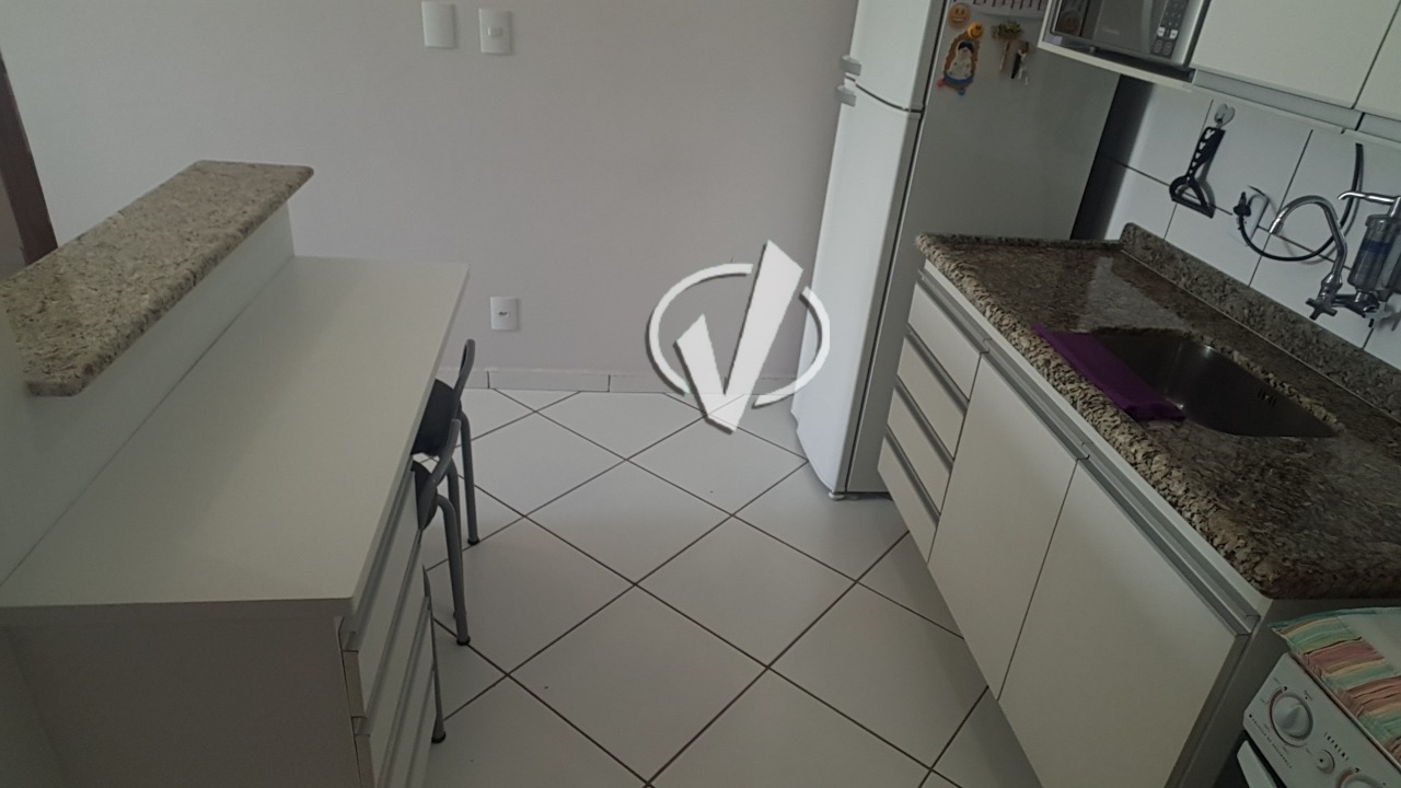 Apartamento em condomínio com dois dormitórios (um dos dormitórios possui armários planejados e iluminação em lead), banheiro social, cozinha com armários planejados, sala, área de serviço coberta e garagem.
