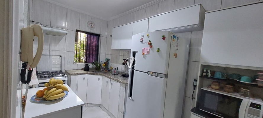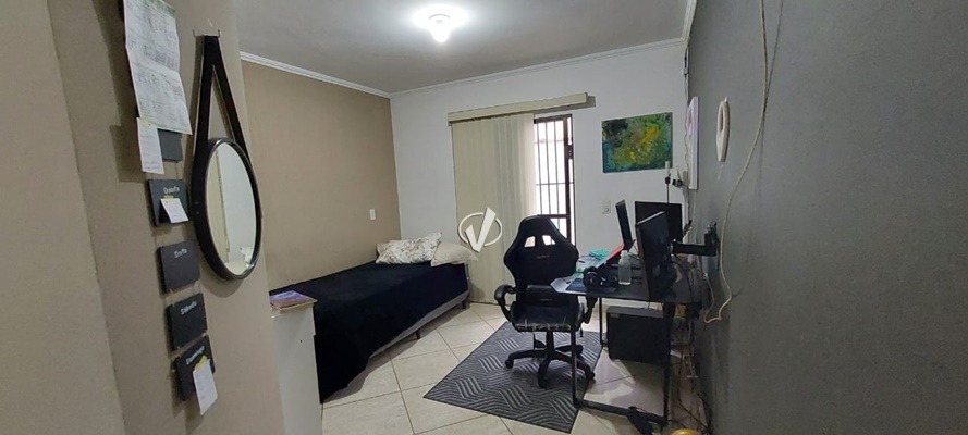 03 Dormitórios com persiana (sendo 01 suíte) com acesso ao quintal, 01 banheiro social, sala de estar com sacada e ar condicionado, sala de jantar, cozinha, área de serviço coberta, quintal, 02 vagas de garagem. Portão eletrônico.