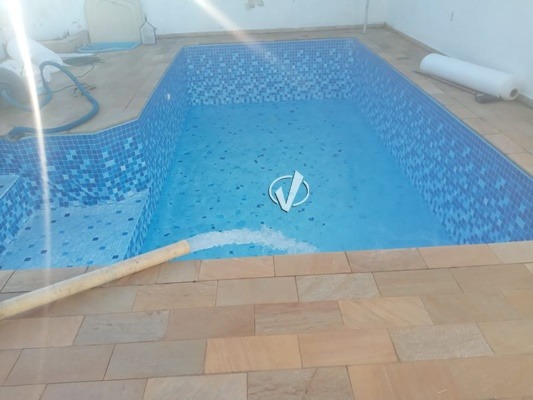 03 dormitórios (sendo 01 suite), escritório, cozinha com armário embutido, fogão e filtro de água instalado, assoalho de madeira, 01 banheiro social, lavabo e suite externa.