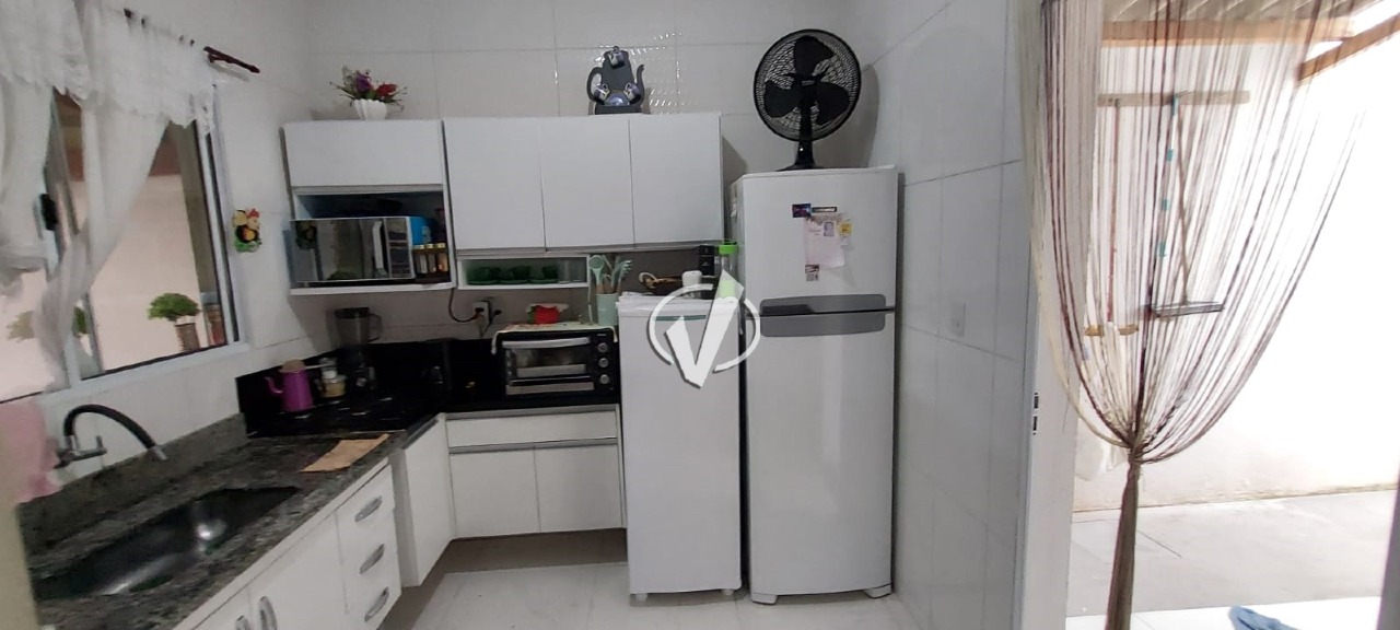 Casa com 02 dormitórios, 02 banheiros sociais (com box), área gourmet, ar condicionado no quarto, área de serviço coberta, garagem com 02 vagas cobertas, portão automático