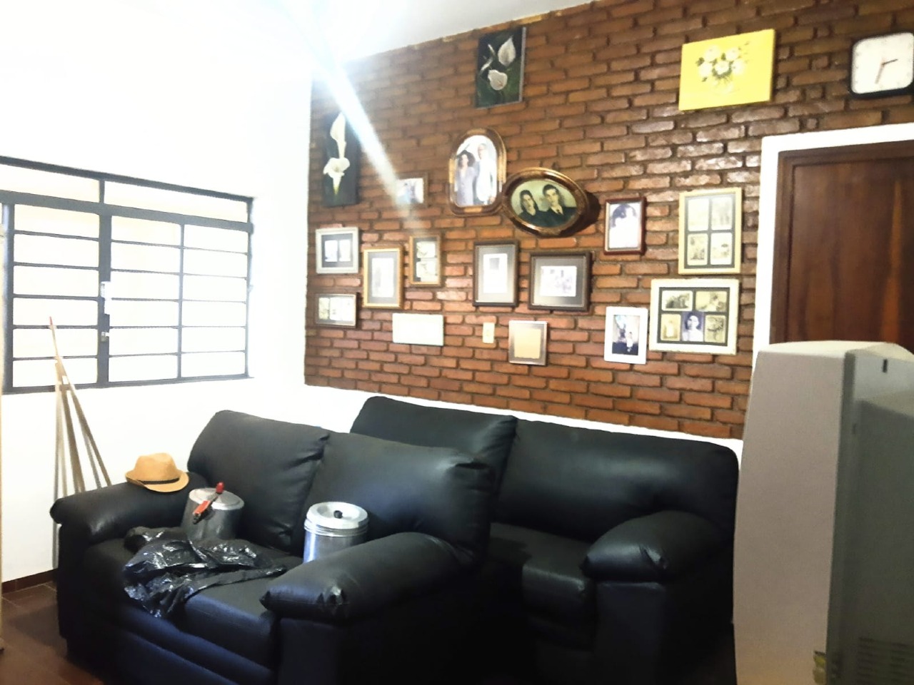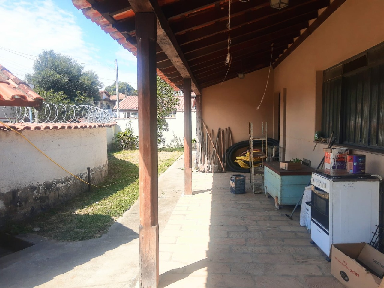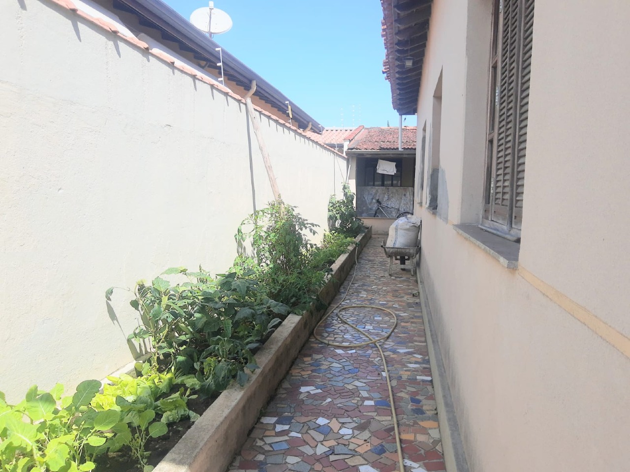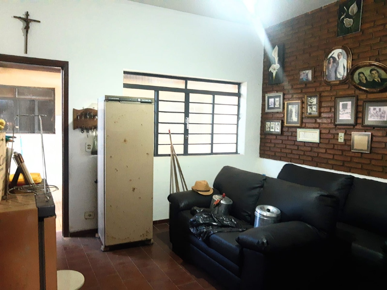 Casa principal: cozinha, copa, sala grande com lareira, 02 banheiros sociais, 02 suítes com armários e 02 dormitórios.