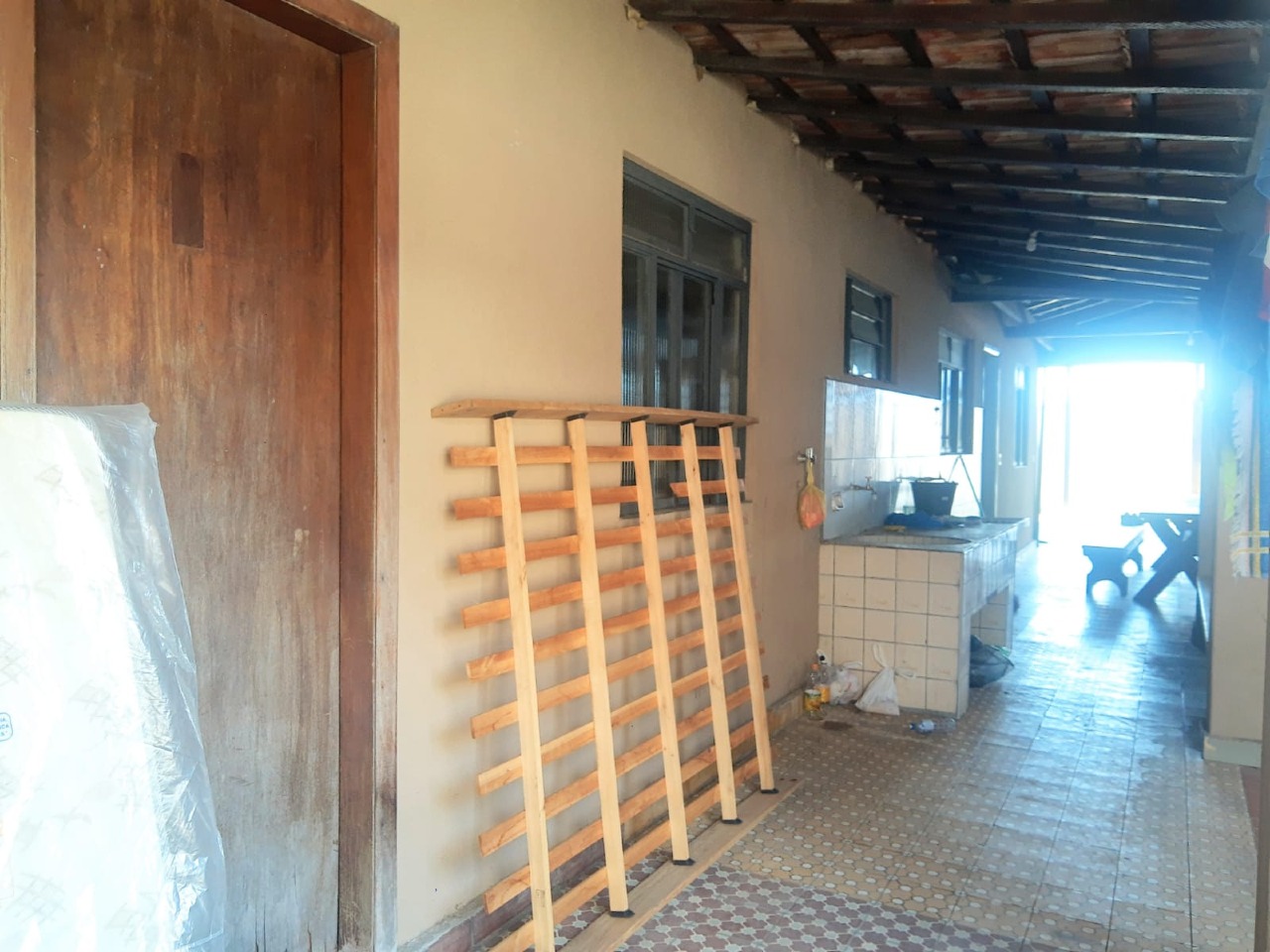 Edícula com 02 dormitórios, 01 banheiro social, cozinha, varanda grande coberta e área de serviço com churrasqueira.