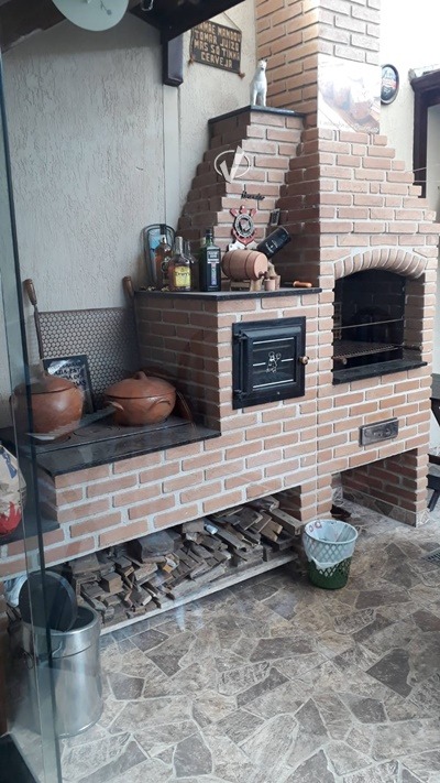 - Área gourmet coberta com churrasqueira, fogão e forno a lenha