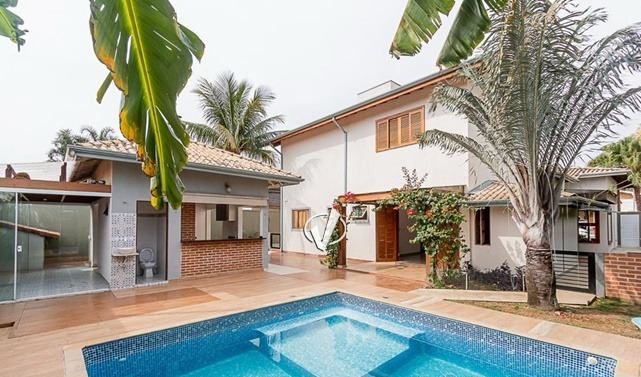 Casa em condomínio com 04 dormitórios (sendo 03 suítes), sala, cozinha, banheiro social, piscina e canil. .