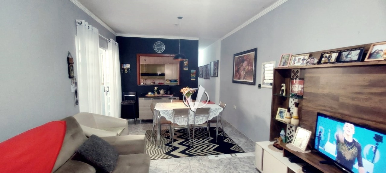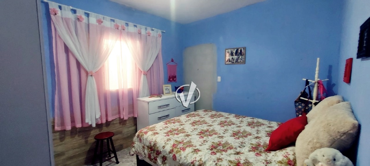 Casa térrea com 3 dormitórios (sendo 1 suíte), sala conceito aberto, com cozinha44,44 1 banheiro social, área de serviço na parte superior, 2 vagas na garagem coberta com portão manual.