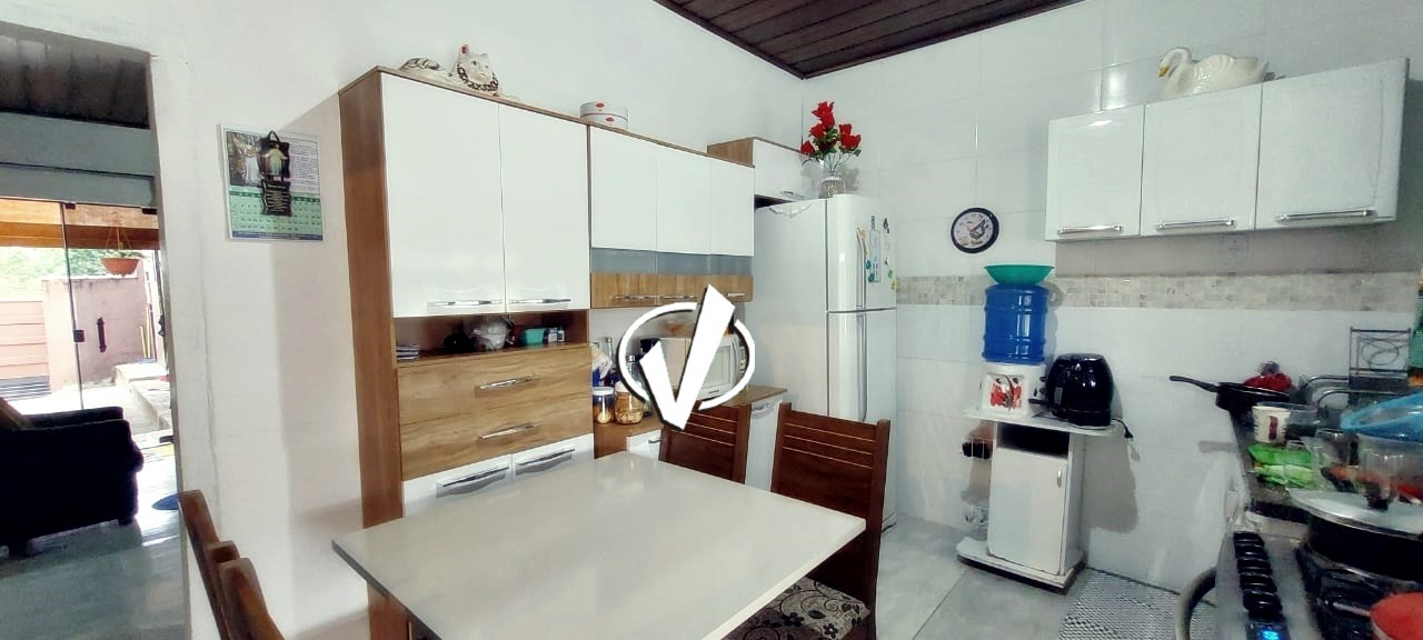 Sobrado possui 02 dormitórios, sendo 01 com sacada, 01 banheiro social, sala, cozinha.