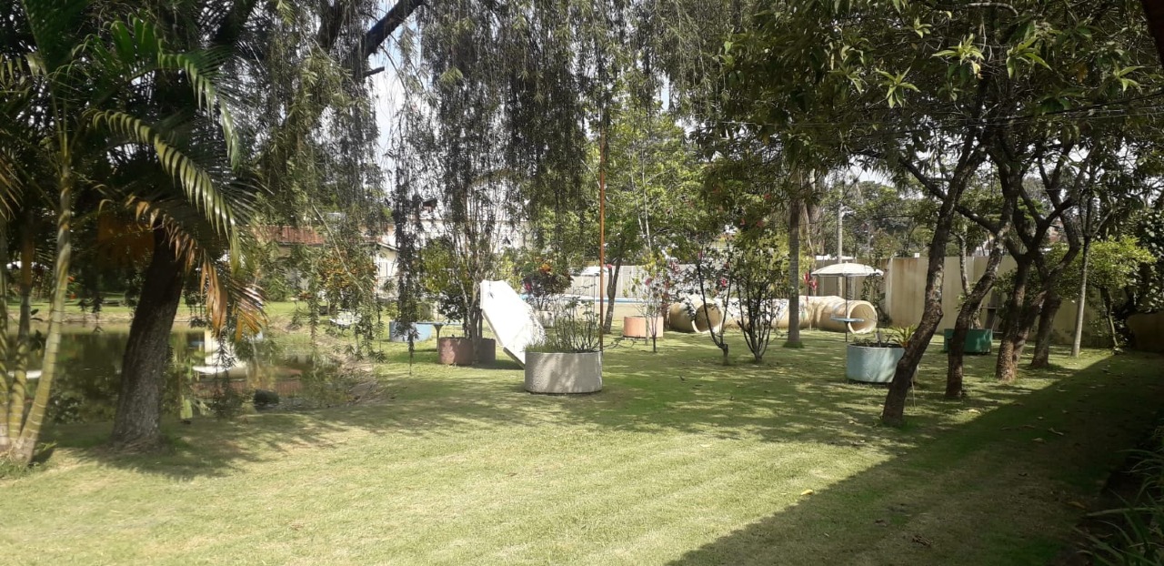 Chácara com 6 dormitórios (sendo 01 suíte), 08 banheiros, 04 cozinhas (sendo 01 industrial), área gourmet com fogão a lenha e churrasqueira, escritório, campo de futebol, 2 lagos com peixes, salão de festa com banheiros masculino e feminino, piscina semiolímpica 20x10, 2 saunas, vestiário masculino e feminino e uma piscina infantil.