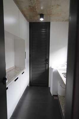 E finalmente a terceira erguida no mesmo período, mas com 206m². Esta casa dispõe de dois quartos, um dos quais é suíte, um banheiro adicional e um lavabo, além de cozinha com despensa, sala, área de serviço, quintal e garagem.