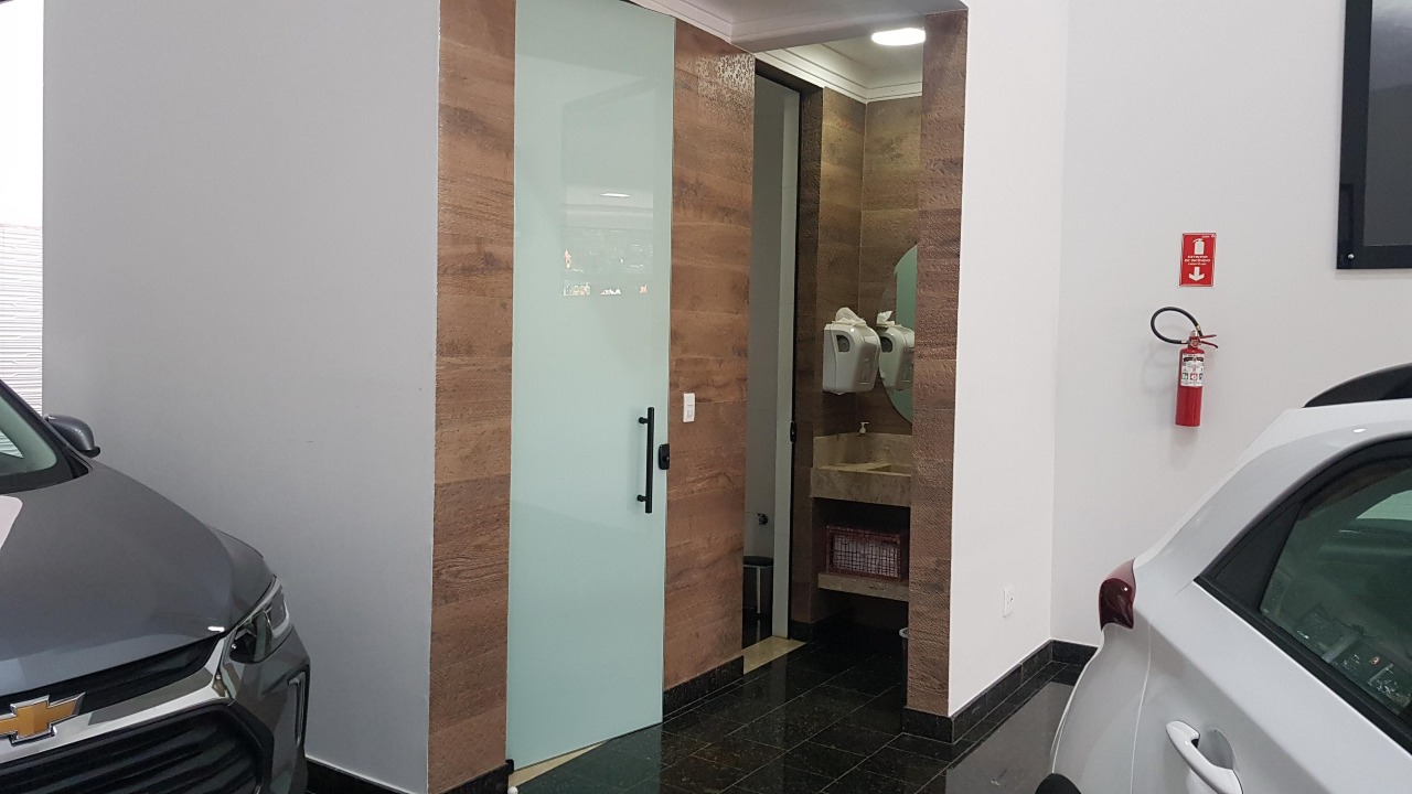 Ponto comercial com 02 escritórios com ar, 03 banheiros, 01 loja com 02 escritórios, acabamento em porcelanato e pátio para 80 carros com cobertura.