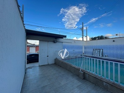Salão inferior 39m² , 01 quarto, sala, copa, cozinha, 02 banheiros, sendo 01 PCD, janelas e portas blindex, despensa, área de serviço, piscina com água de poço artesiano.