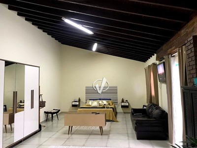 Salão superior 38m2, 01 sala, 01 suíte, 02 vagas de garagem, portão eletrônico e cerca elétrica.